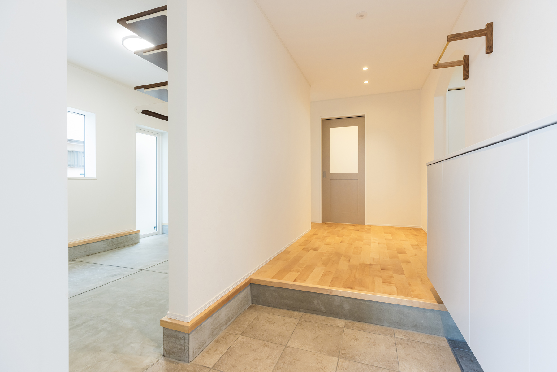 玄関ドアから入って来て、目に入る広い玄関ホールはスッキリ、気持ちの良い空間