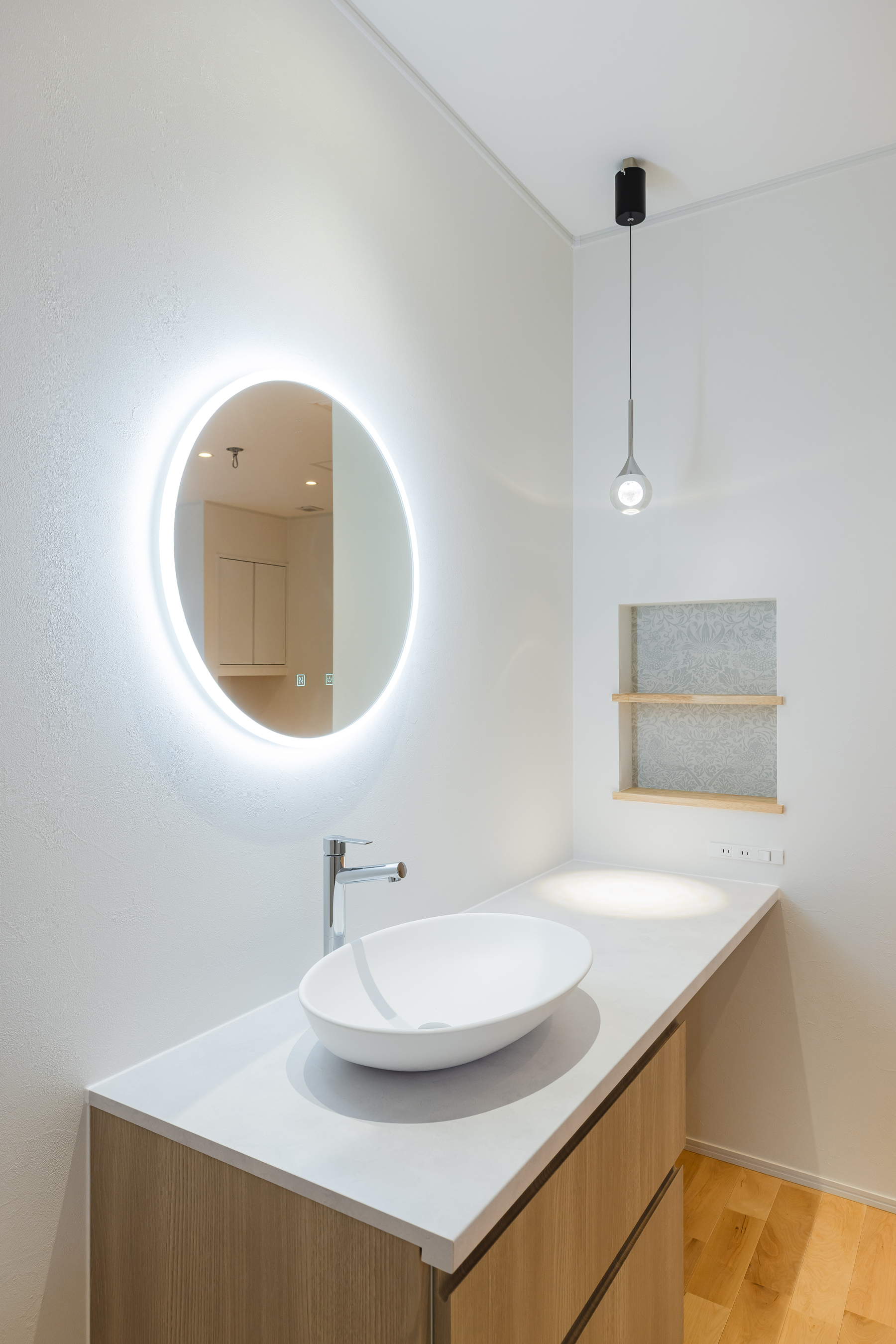 奥様こだわりの手洗い付化粧コーナー